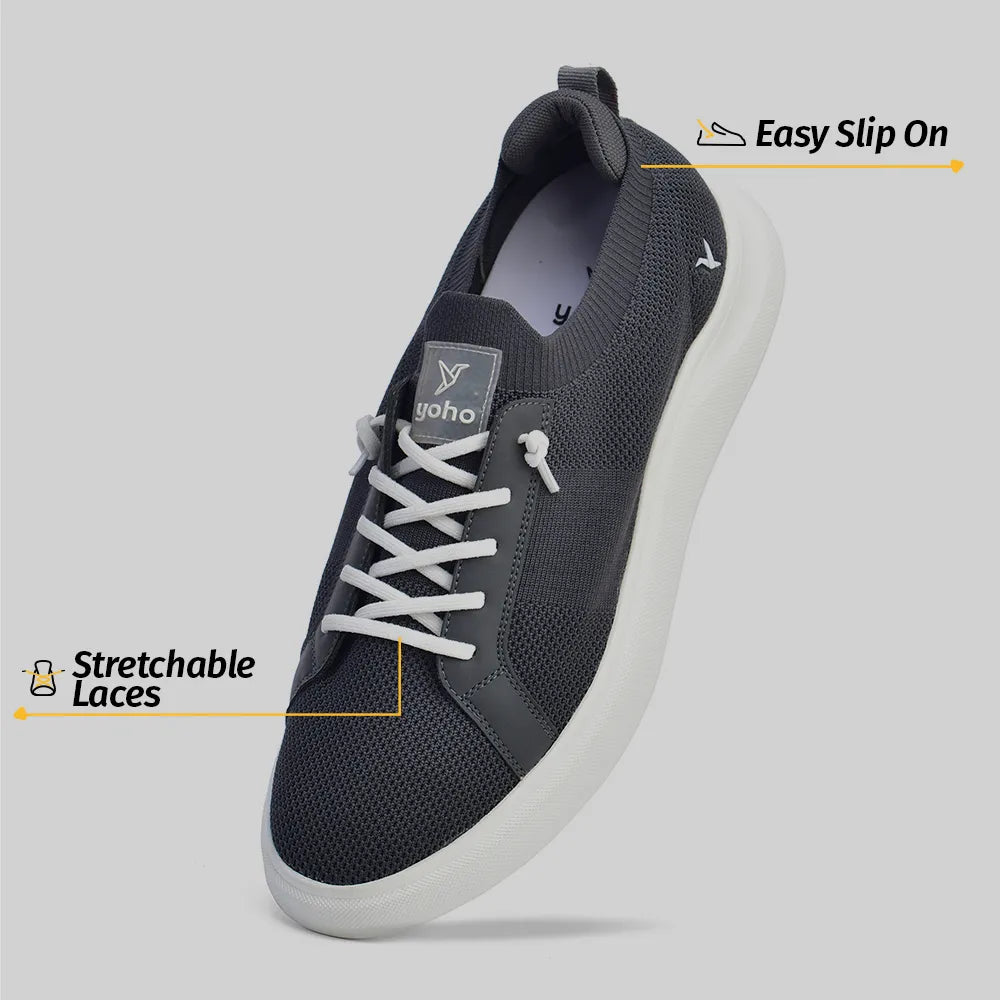 Ready to conquer style and comfort? Meet Yoho Trip Sneakers, your new go-to sneakers. These low-tops are crafted with four-way stretchable flyknit that keeps your feet cool, dry and super-comfy. The outsole is lightweight and non-slip, perfect for confident steps on any surface. Inside, you’ll find cushioning that hugs your feet from the back, along with insoles that ensure a comfortable fit. Slip into Yoho Trip Sneakers and let every step be a stylish adventure!