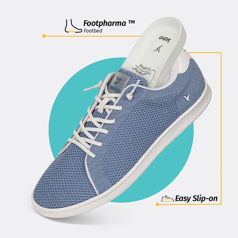 Get ready to stroll through your day with Yoho Wind sneakers! These trendy low-tops are crafted with four-way stretchable fly knit fabric that gives your feet extra breathing space and keeps the sneaker lightweight. The breathability offered by its knit upper keeps your feet dry and comfy. Coming with PU moulded insoles it offers superior comfort. The elastic laces on these sneakers ensure snug fit. Ready to feel like you’re walking on air? Step into Yoho Wind sneakers!
