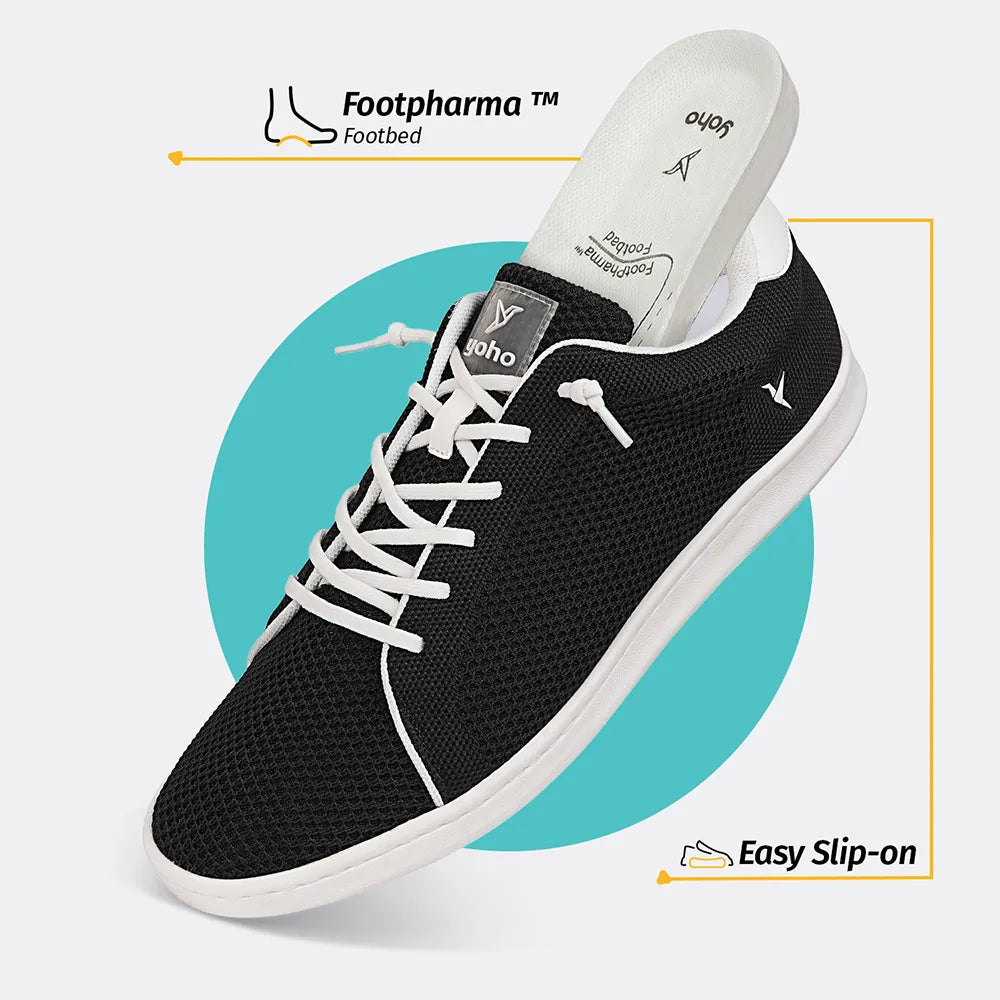 Get ready to stroll through your day with Yoho Wind sneakers! These trendy low-tops are crafted with four-way stretchable fly knit fabric that gives your feet extra breathing space and keeps the sneaker lightweight. The breathability offered by its knit upper keeps your feet dry and comfy. Coming with PU moulded insoles it offers superior comfort. The elastic laces on these sneakers ensure snug fit. Ready to feel like you’re walking on air? Step into Yoho Wind sneakers!
