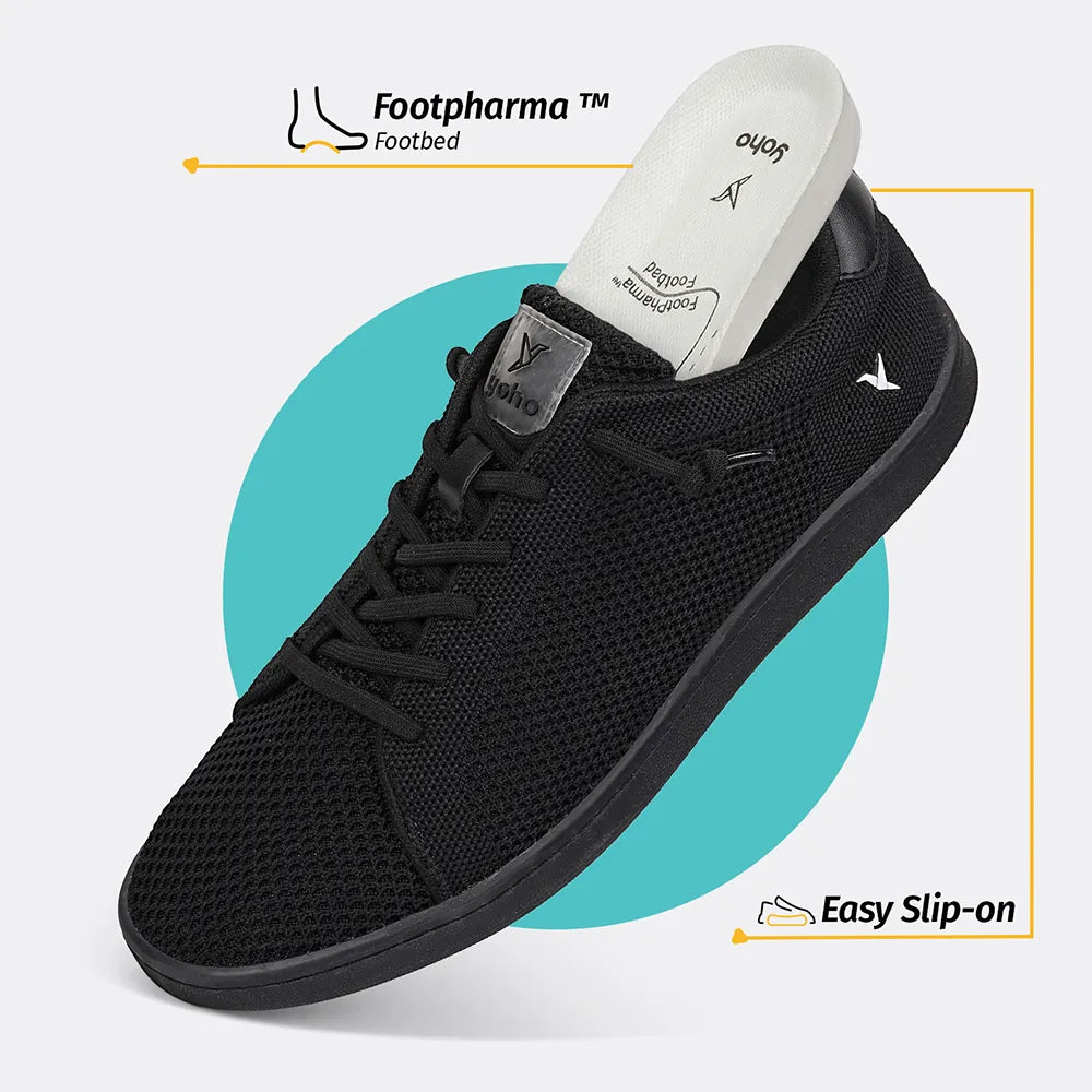 Get ready to stroll through your day with Yoho Wind sneakers! These trendy low-tops are crafted with four-way stretchable fly knit fabric that gives your feet extra breathing space and keeps the sneaker lightweight. The breathability offered by its knit upper keeps your feet dry and comfy. Coming with PU moulded insoles it offers superior comfort. The elastic laces on these sneakers ensure snug fit. Ready to feel like you’re walking on air? Step into Yoho Wind sneakers!