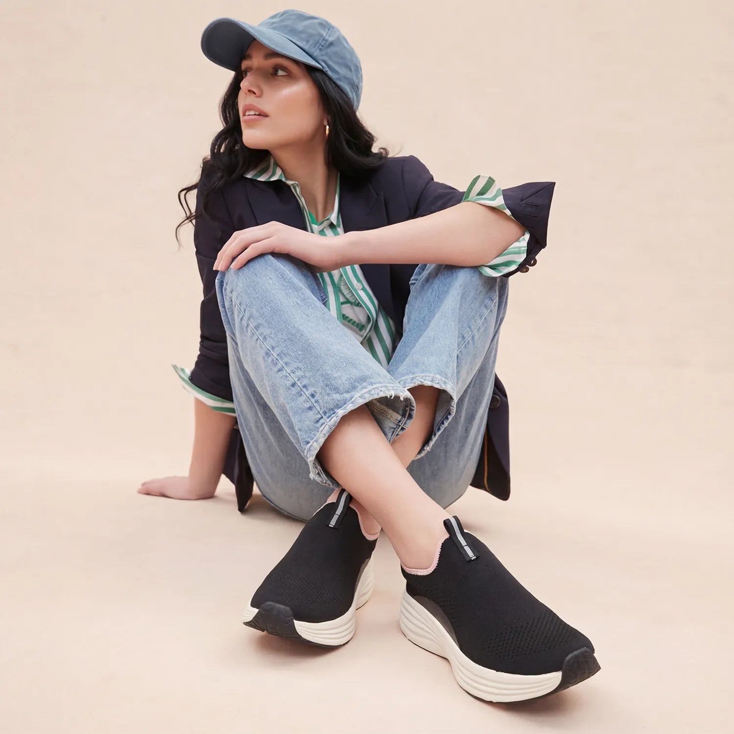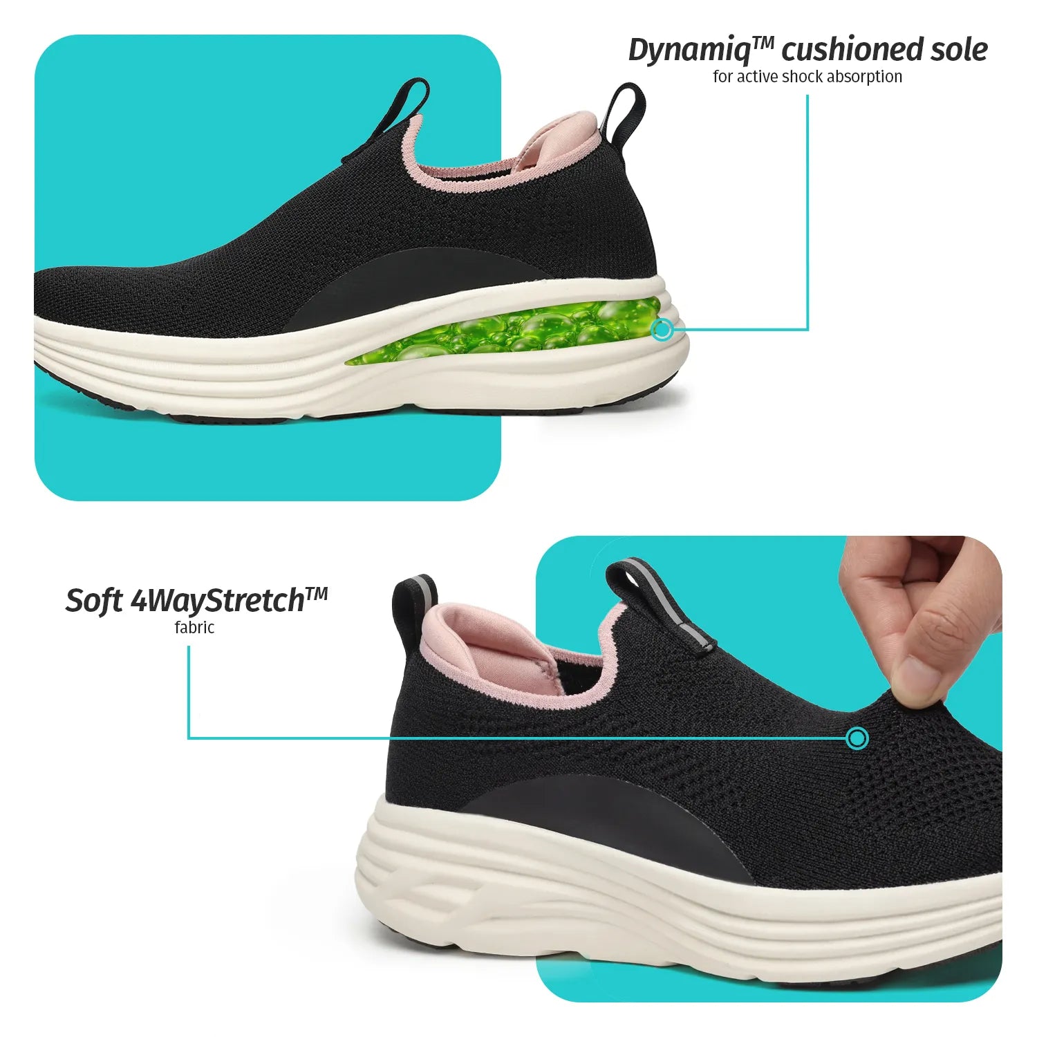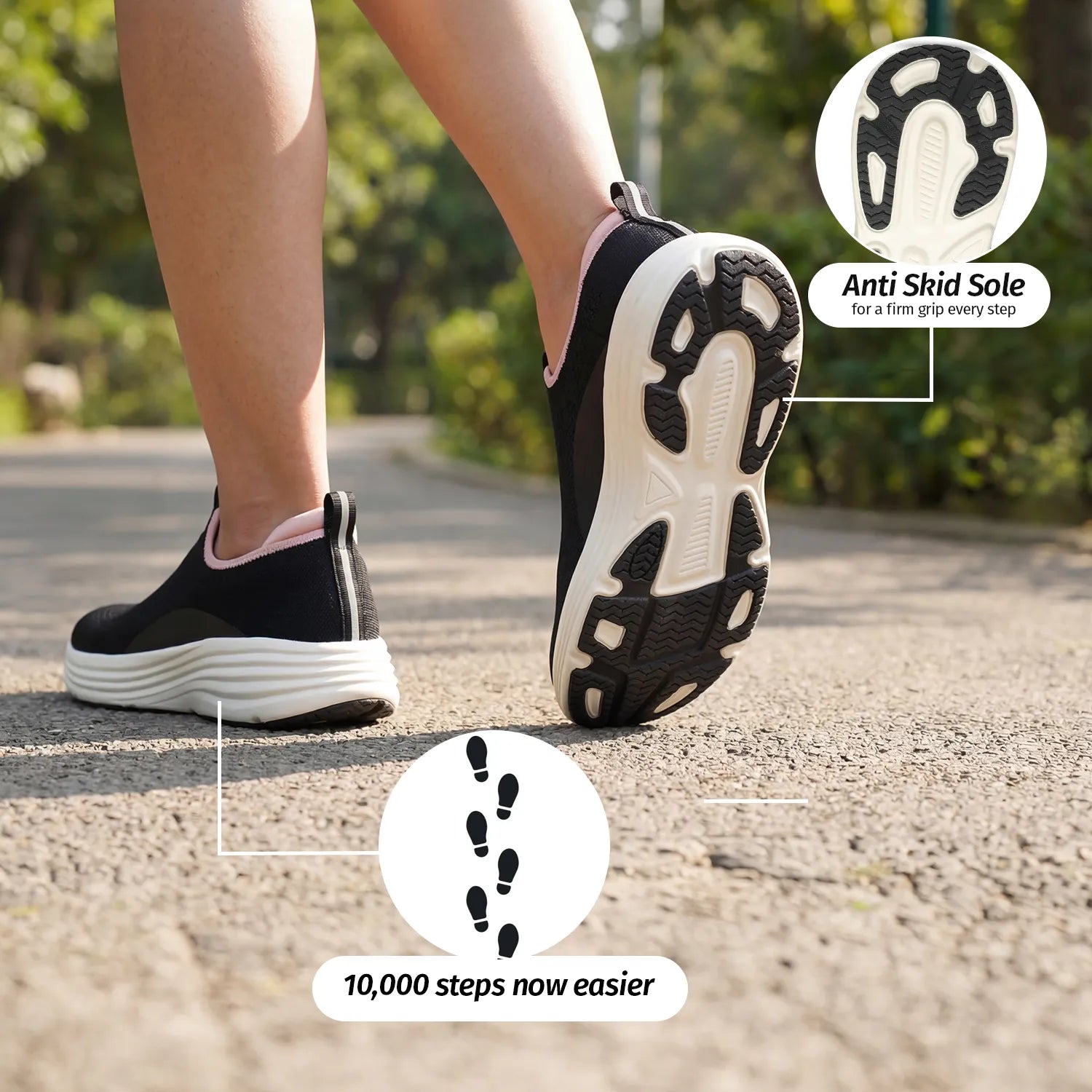 Yoho Rushhour Dynamiq 0900 is a women’s slip-on crafted for breathable comfort and everyday versatility. Featuring a flexible knitted upper with Lycra lining for a snug yet airy fit, it keeps your feet comfortable throughout the day. The Foam + EVA insock ensures cushioned support, while the EVA + TPR outsole offers lightweight stability and reliable grip. Available in stylish shades like Carbon Black, Black Ice, Baby Pink, and Classic Black, Rushhour Dynamiq 0900 blends comfort, flexibility, and modern everyday style.