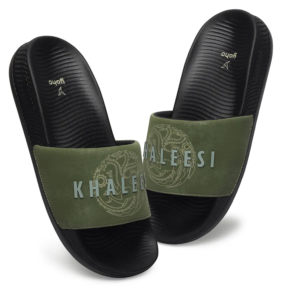 Channelling your inner Khaleesi to power through your day, or relax like a Queen in your home!With soft and lightweight EVA cushioning and EVA sole, durable PU upper layer, and a powerful, appealing design, what’s not to like in this pair of women's flats? Comfortable, convenient and cool, these sliders are perfect for casual wear or simply a great lounging experience. These aren’t immune to fire, though, so keep them away from hot water, heat sources and the washing machine. Use a dry cloth to clean after every use. A double win - comfy footwear, and Khaleesi merchandise!