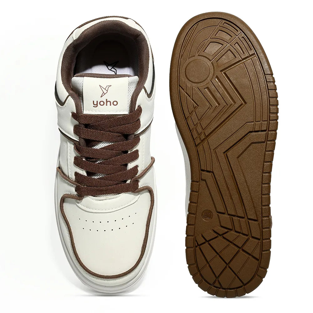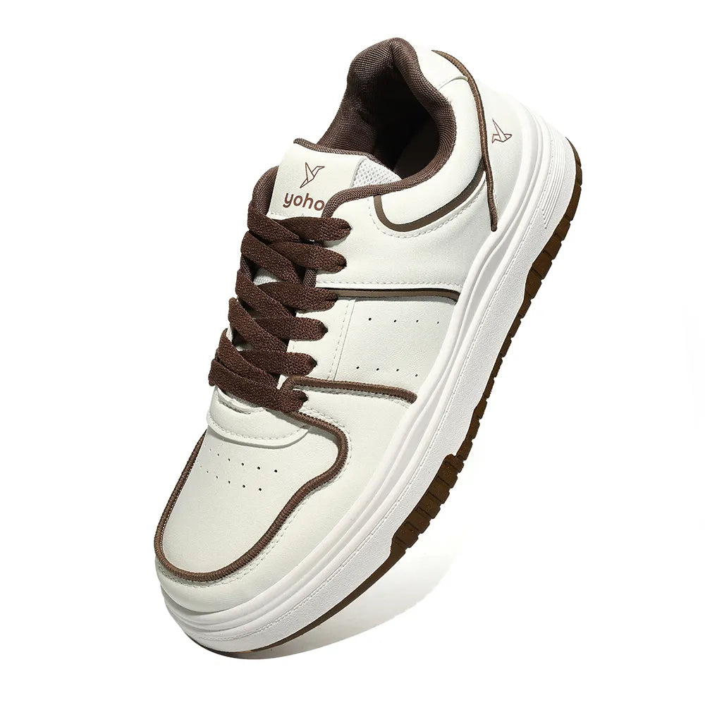 Yoho UrbanDash 1050 is a versatile urban sneaker designed to be a wardrobe staple, combining everyday style with all-day comfort. Built with EVA-moulded insocks for soft cushioning and adaptive support, it helps reduce foot fatigue—making it ideal for daily wear and urban commuting. The lightweight, easy-to-maintain upper is paired with a breathable mesh lining to keep feet comfortable on the move, while the durable PVC sole delivers reliable grip and flexibility. Finished with a clean toe profile and standout thick cotton laces, this flat lace-up sneaker is made for effortless, everyday wear. Care: Do not machine wash; dab with water to clean.