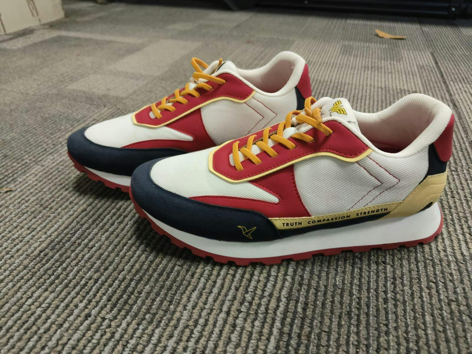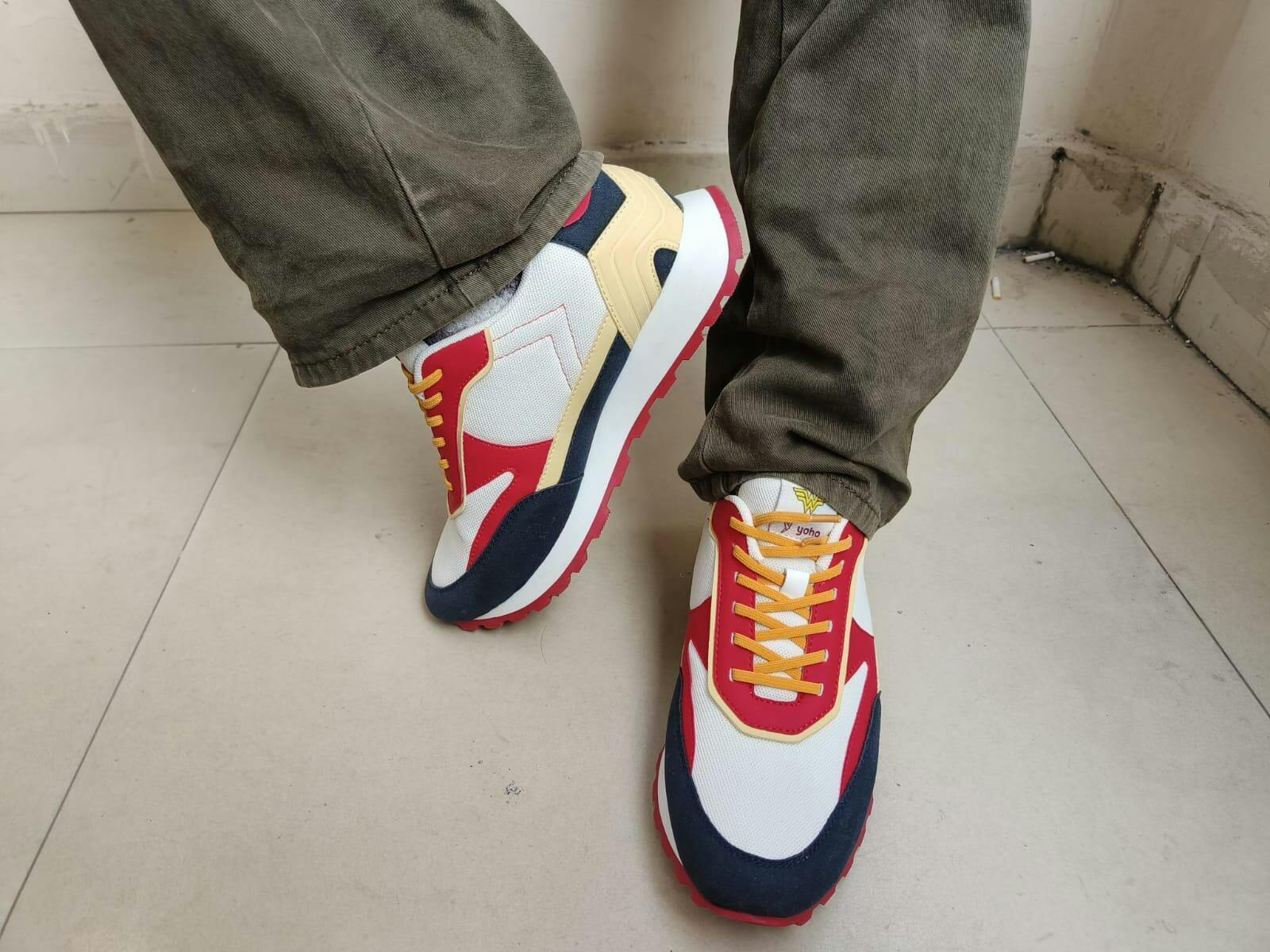 Step out in a sneaker that shouts bold, heroic and fearless energy. Introducing our newest addition to the Warner Bros - Virtue. Its colour-block look in red, yellow, and navy channels the hero’s fearless energy, while the breathable mesh and PU upper keep the build lightweight yet durable. Inside, a PU moulded Foot Pharma insole provides superior cushioning for long hours of wear.